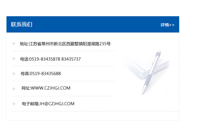 地址:常州市新北區友邦商務大廈1幢16、17層  電話:0519-85101652  傳真:0519-85112595  郵編:213022  網址:www.cz-jiayue_cn.xfxpt.com  郵箱:xiajifengaa@163.com